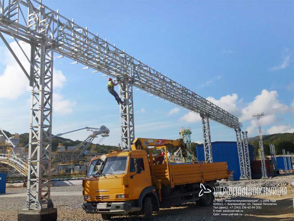 Завод металлоконструкций ООО "Энергостальконструкция" изготовил металлоконструкции под строительство металлических порталов, прожекторных мачт и молниеотводов.