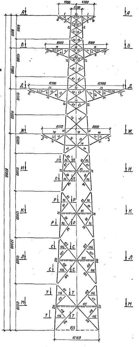 Цены на металлические опоры ПП330-2/52 в Алма-ате могут различаться, в зависимости от марки стали и антикоррозийного покрытия металлоконструкций. Масса опоры без антикоррозийного покрытия 96399 кг. Опора ПП330-2/52 изготавливается по чертежной монтажной схеме № 3.407.2-168. База опоры 6100 мм, высота траверсы 38 метров. По типу опора — переходная.