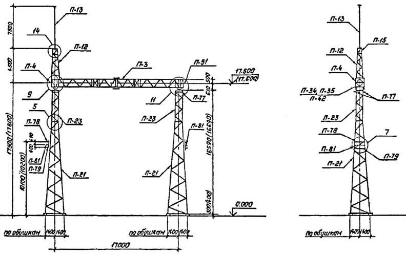 Стальные линейные порталы ОРУ 500 кВ ПС-500Л1 и ПС-500Л2 изготавливаются по типовому проекту 3.407.9-149 выпуск 2. Траверса и стойки (узкобазные) производятся из углового металлопроката в виде болтового соединения решетчатых конструкций.