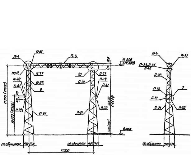 Стальные линейные порталы ОРУ 500 кВ ПС-500Л1 и ПС-500Л2 изготавливаются по типовому проекту 3.407.9-149 выпуск 2. Траверса и стойки (узкобазные) производятся из углового металлопроката в виде болтового соединения решетчатых конструкций.
