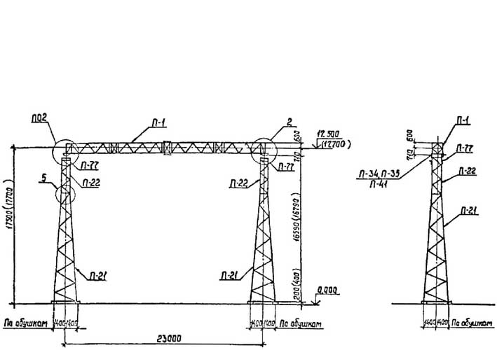 Стальной линейный портал ОРУ 500 кВ ПС-500Л6 изготавливается по типовому проекту 3.407.9-149 выпуск 2. Траверса и стойки (узкобазные) производятся из углового металлопроката в виде болтового соединения решетчатых конструкций.
