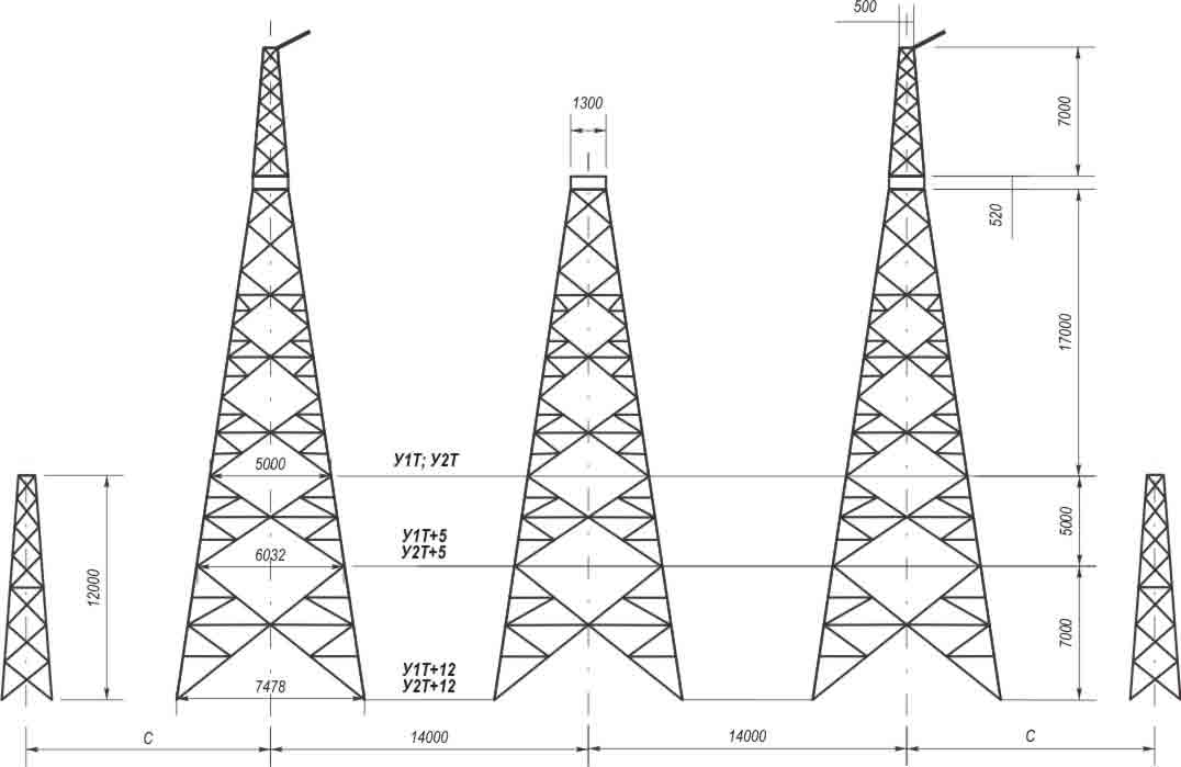 У2Т Анкерно-угловая Одноцепная I-IV 3хАС-400/51, 3хАС500/64 ТК-11 С245; С345 ГОСТ27772-88 4,6 5000 17029 17590 50-80 кгс/м2 |