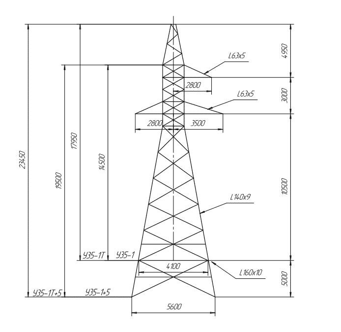 Цены на опоры У35-1Т+5 в Алма-ате могут различаться, в зависимости от марки стали металлоконструкций и антикоррозийного покрытия. Масса опоры с горячим цинковым покрытием 4900 кг, масса опоры без антикоррозийного покрытия 4725 кг. Опора У35-1Т+5 по типу — анкерно-угловая, по цепности — одноцепная. База опоры 5700 мм, высота траверсы 15 м.