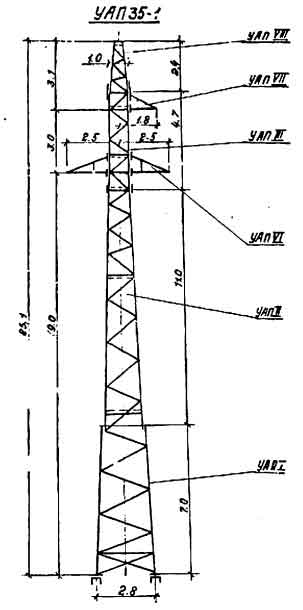 Цены на опоры УАП35-1 в Алма-ате могут различаться, в зависимости от марки стали металлоконструкций и антикоррозийного покрытия. Опора УАП35-1 изготавливается в Алма-ате по типовому проекту 3.407.2-132, предназначена для переходов через инженерные сооружения. По типу опора УАП35-1 — промежуточная, по цепности — одноцепная, марка проводов АС35- АС95. Вес опоры без антикоррозийного покрытия 2985 кг, с цинковым покрытием 3267 кг. Также завод может покрыть любым антикоррозийным покрытием. Все опоры комплектуются оцинкованными метизами. Производим доставку заказов по всей территории РФ и в страны ближнего зарубежья.