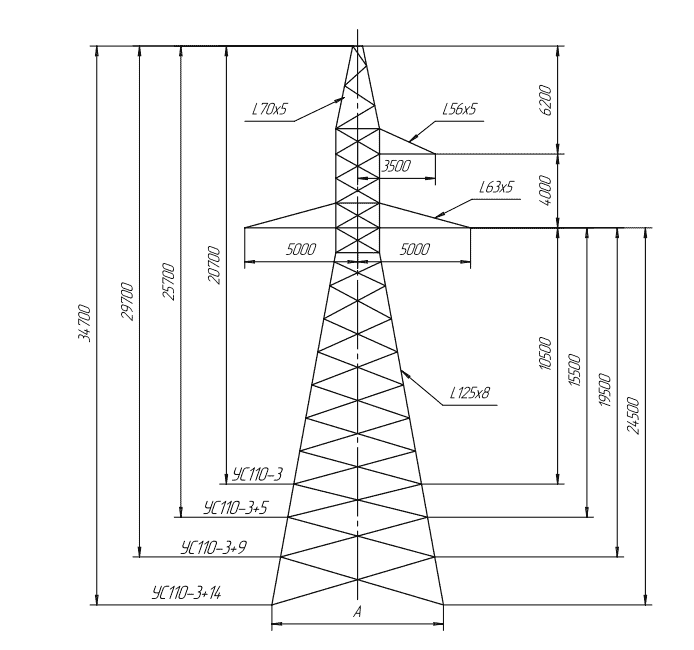 Цены на опоры УС110-3 в Алма-ате могут различаться, в зависимости от марки стали металлоконструкций и антикоррозийного покрытия. Масса опоры без антикоррозийного покрытия 5293 кг, с покрытием методом горячего цинкованием 5498 кг. Опора УС110-3 предназначена для городских условий. По цепности — опора одноцепная, по типу — анкерно-угловая. Вся продукция проходит контроль качества лабораторией неразрушающего контроля.
